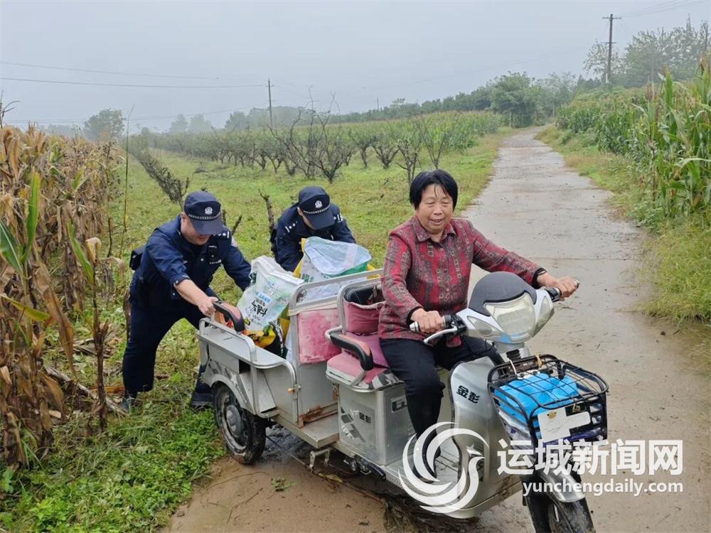 除了助力抢收,民辅警还时刻关注秋收中的各类隐患。降雨导致部分乡村道路积水、泥泞,一些运输农作物的车辆陷入了泥坑。