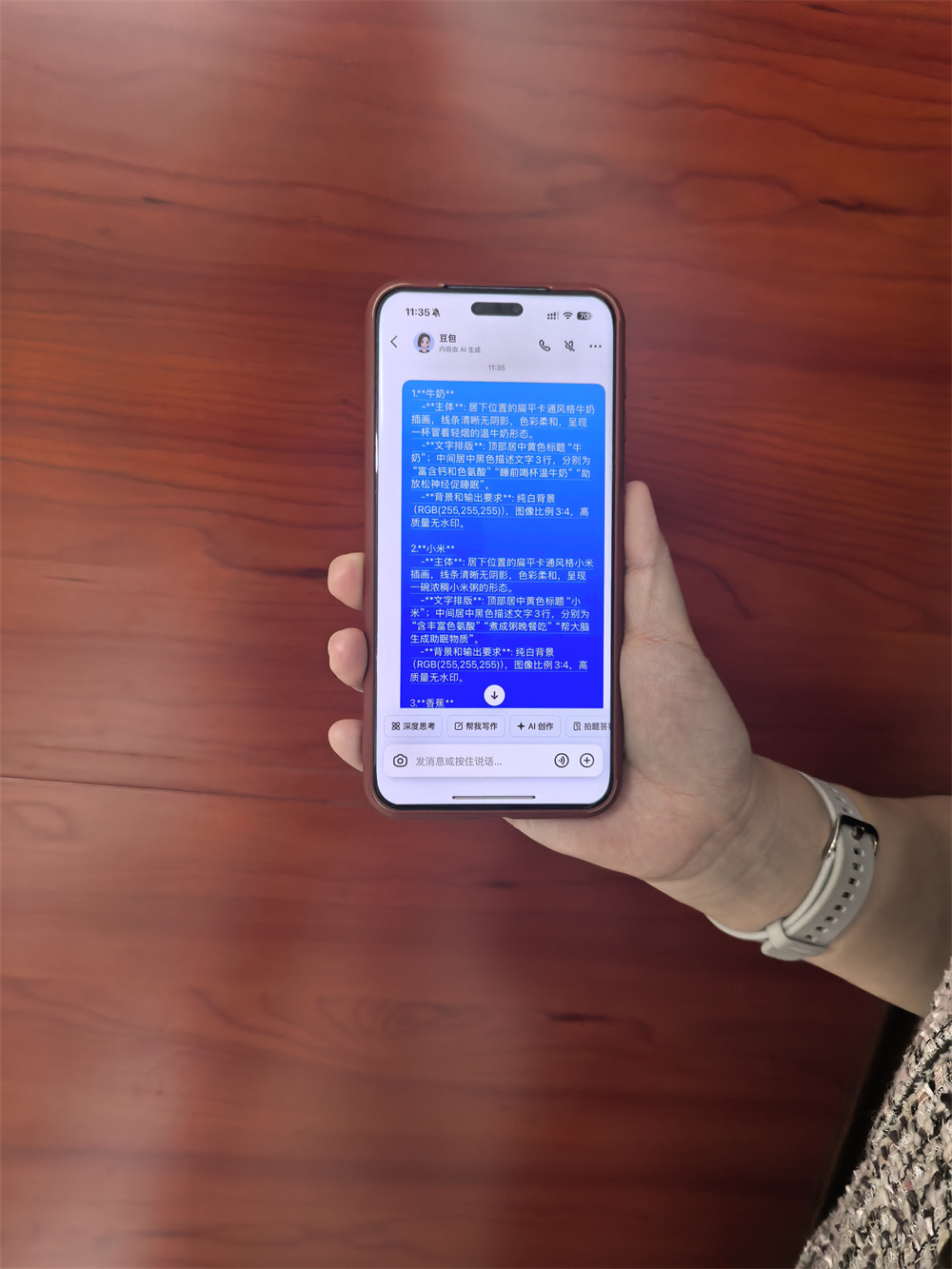 她专门编写了一个“健康内容选题助手”提示词,只需输入爆款标题,AI就能生成5个类似选题。景景一边演示一边说:“比如输入‘对睡眠特好的食物’,AI会出现‘助眠的8种家常食物’等多个选题。”