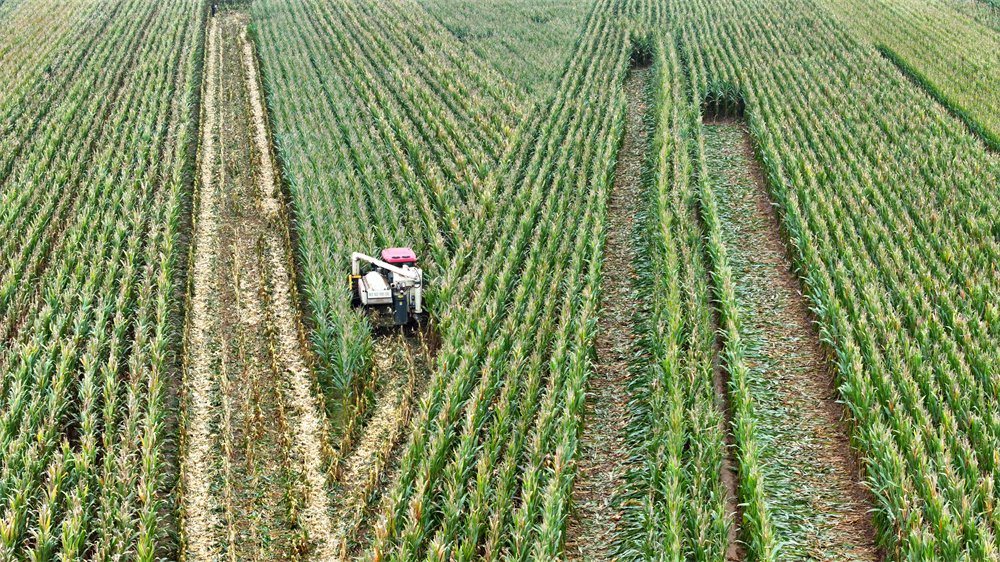 “轰隆隆……”在河北省邯郸市广平县平固店镇大庙村村民赵国英的玉米田里,3台来自河南驻马店的履带式收割机正在田间来回穿梭,全力帮助农户进行秋收收尾。