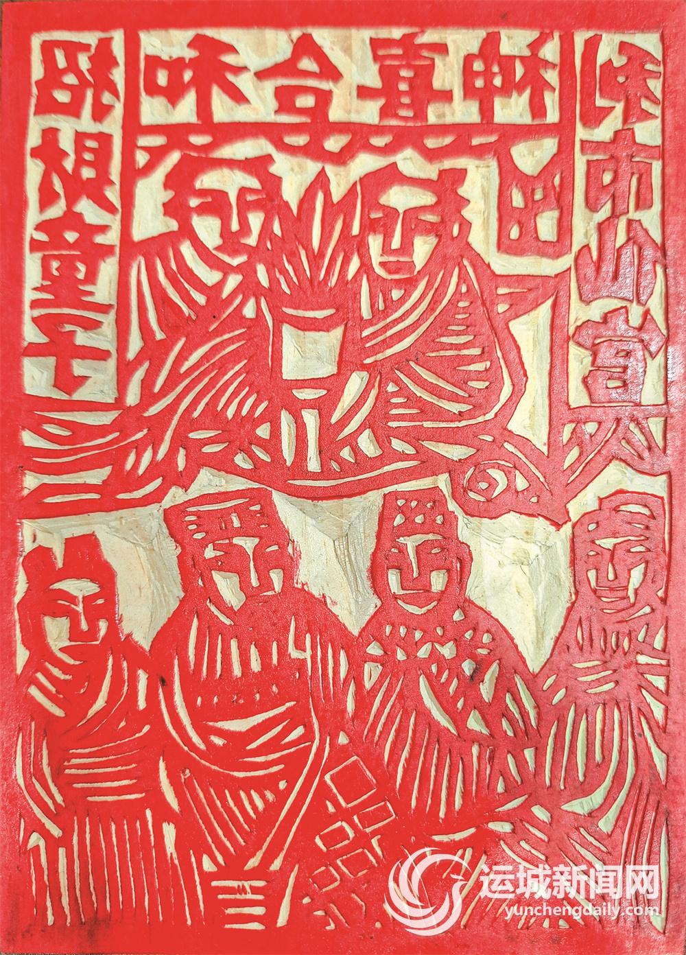 果然,遇见了许多新鲜的东西,在现代的语境中,20世纪七八十年代的景致便有了艺术的味道。在东乐社的三楼,刚上电梯的左手边,一块“蒲坂木刻版画”的木牌映入眼帘,留住了我的脚步。以前,绛州木版年画,由传承人吴百锁老师带到了运城、太原,甚至到了省外。与绛州在地域和文化历史上齐名的蒲州,木版年画却鲜有遇到。在东乐社发现的这一系列蒲州木版画作,让人眼前一亮。