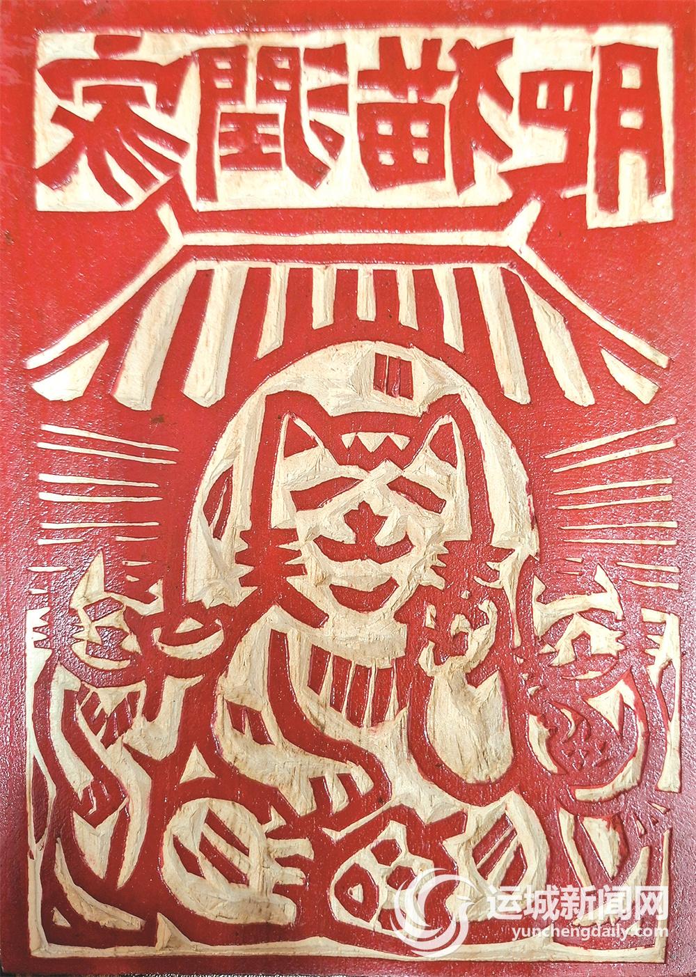 邵意茹抱出自己心爱的一叠成品木版,她说,“这可是我的宝贝,一般是不让人看的。”我观察她的木版,有现代感的“猫肥润家”,有漫画版的关老爷,还有时尚的黑悟空。她说,这些种类,小孩子们最喜欢。没有来运城之前,她在家乡的鹳雀楼景区搞版画研学和展售,是景区小有名气的版画家呢!