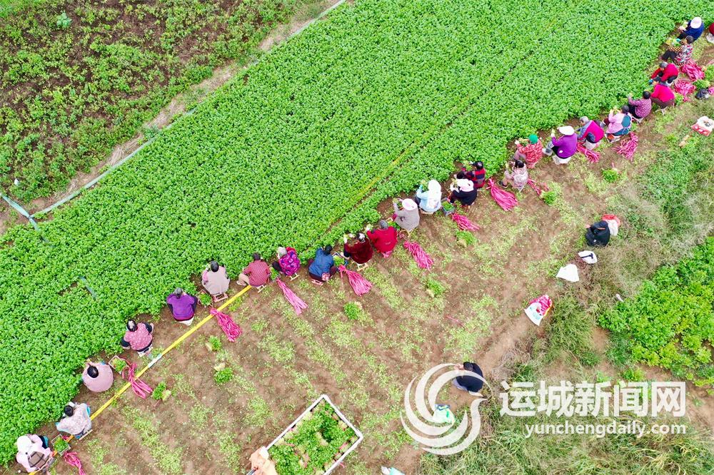 10月上旬,夏县胡张乡的百亩香菜迎来丰收季,村民忙着采收、捆扎、搬运装车,现场一派繁忙的丰收景象。