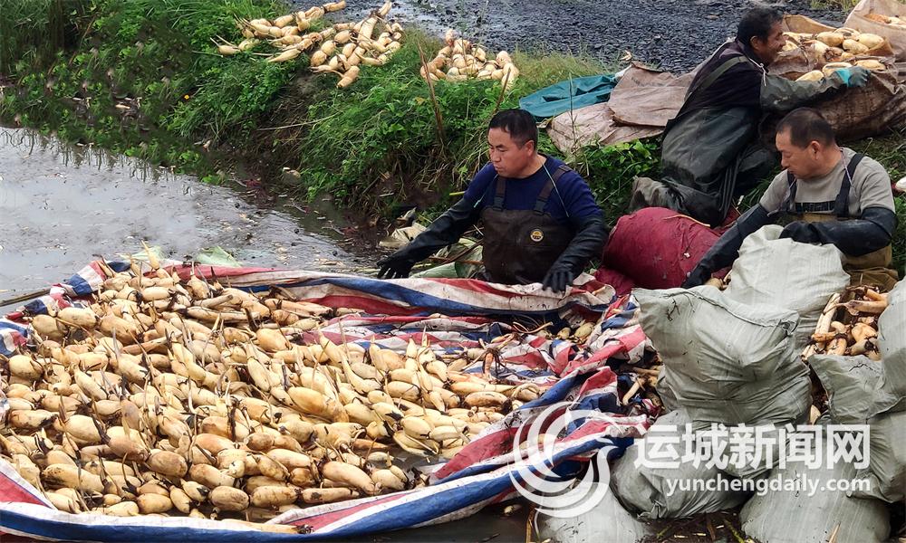 寒露过后,万荣县荣河镇宝井黄河滩涂的万亩莲藕基地迎来采收旺季。一节节饱满鲜嫩的莲藕被采挖上岸,分拣、冲洗、过秤、装车的繁忙景象在田间地头随处可见。
