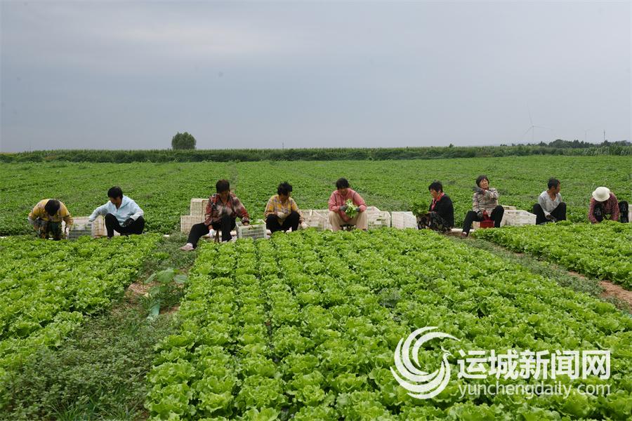 10月13日,闻喜县后宫乡兴垣村蔬菜地里,村民在采收生菜,田间一派繁忙景象。