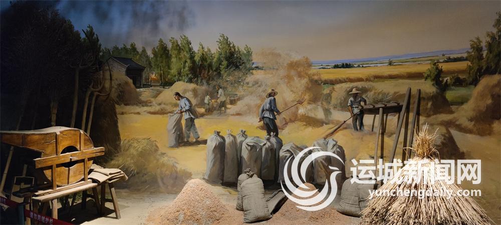 永济博物馆民俗规划展展出的谷物脱粒、晾晒场景 记者 刘亚 摄