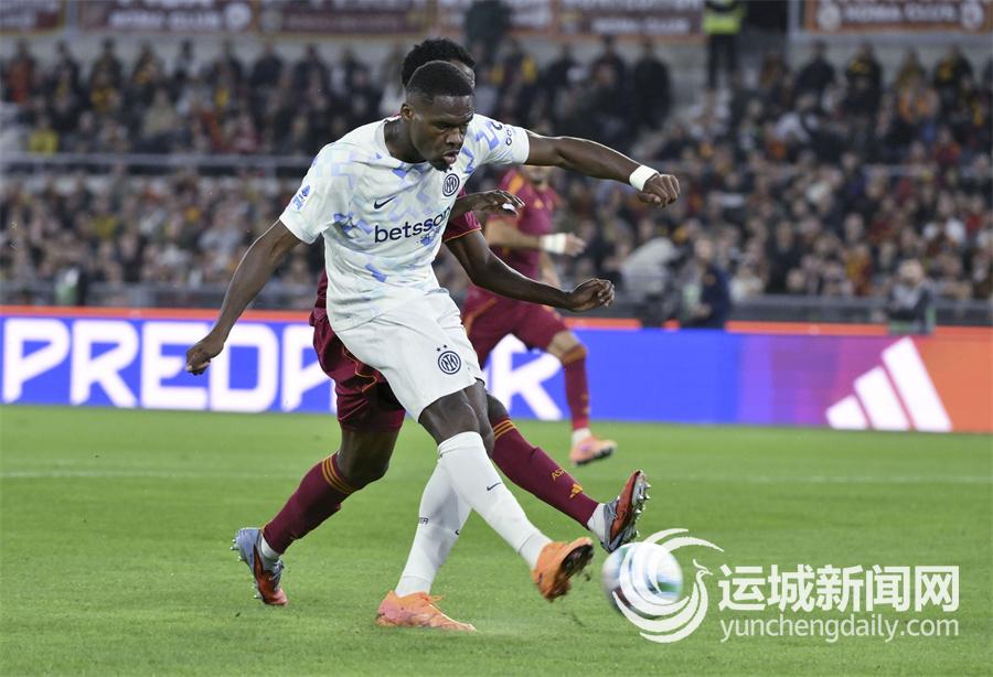 10月18日,国际米兰队球员博尼在比赛中射门得分。当日,在2025~2026赛季意大利足球甲级联赛第七轮比赛中,国际米兰队客场1比0战胜罗马队。 新华社发