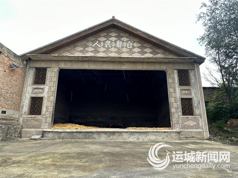 村中央有一座1975年由村民合力兴建的人民舞台。舞台梁木交错,规模宏大,虽历经半世纪风雨,结构仍坚固,足见当年修建时的用心。因秋雨连绵,村民们将从田里收回的玉米晾晒在舞台上,金黄的玉米粒铺满台面,让这座老建筑依旧“为人民服务”。舞台前的广场上,健身器材一应俱全,旁边配备卫生室、公共卫生间,是村民日常休闲的好去处。老旧舞台与现代设施恰如村落的历史与当下,无缝衔接。
