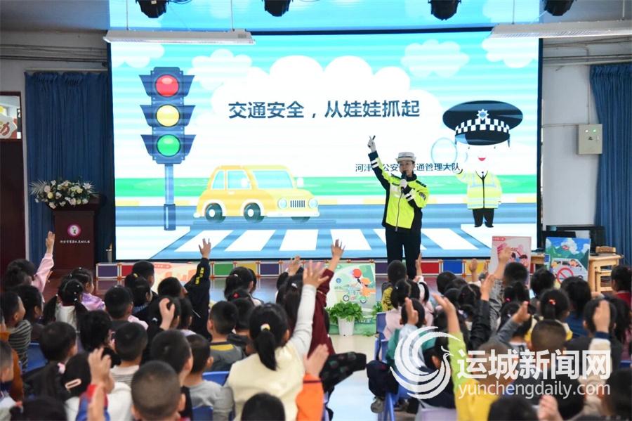 近日,河津公安交警宣传民辅警走进辖区机关幼儿园,开展了一场别开生面的交通安全宣传教育活动,积极推进“大排查、大整治、大宣传”百日行动。