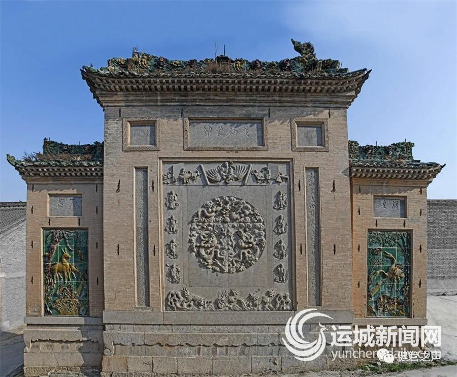 清乾隆六十年(公元1795年)立石的砖砌石雕琉璃影壁,上有石刻行书楹联。遒劲有力,气宇轩昂,为县邑历代楹联石刻之精品。
