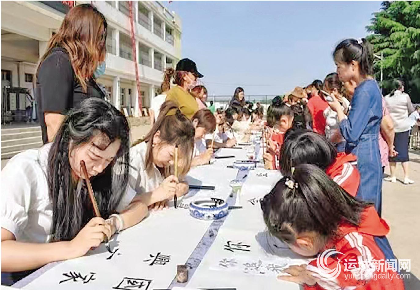 同时,芮城县教体局积极搭建平台,开展各种活动,促进书写教育在各学校蓬勃开展。为了让更多的学校、更多的师生有出彩的机会,芮城县教体局坚持开展“亮比评”活动,以流动现场会的形式召开,一年一个学校作为主办校。在活动现场,全体教师现场写粉笔字,各个年级学生写钢笔字。师生现场写字,共同展示,综合评比,互相竞赛,形成了书写教育百花齐放的校园氛围。