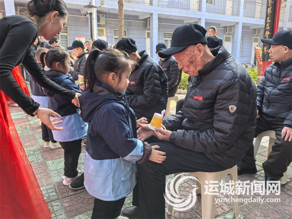10月27日,盐湖区南城中心幼儿园的小朋友们来到运城市光荣院,为老兵们送上自己制作的手工作品,祝福他们重阳节快乐。