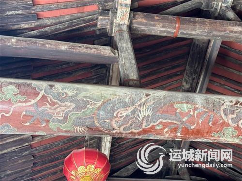 抬头望去,元代建筑特点极为明显,梁架豁然展开,整体结构沉稳有力。梁上的彩绘虽历经数百年,依旧线条清晰——飞龙栩栩如生,龙须纤毫毕现,颜色鲜艳得仿佛昨日才绘就,可想当年庙宇初成时的斑斓色彩。