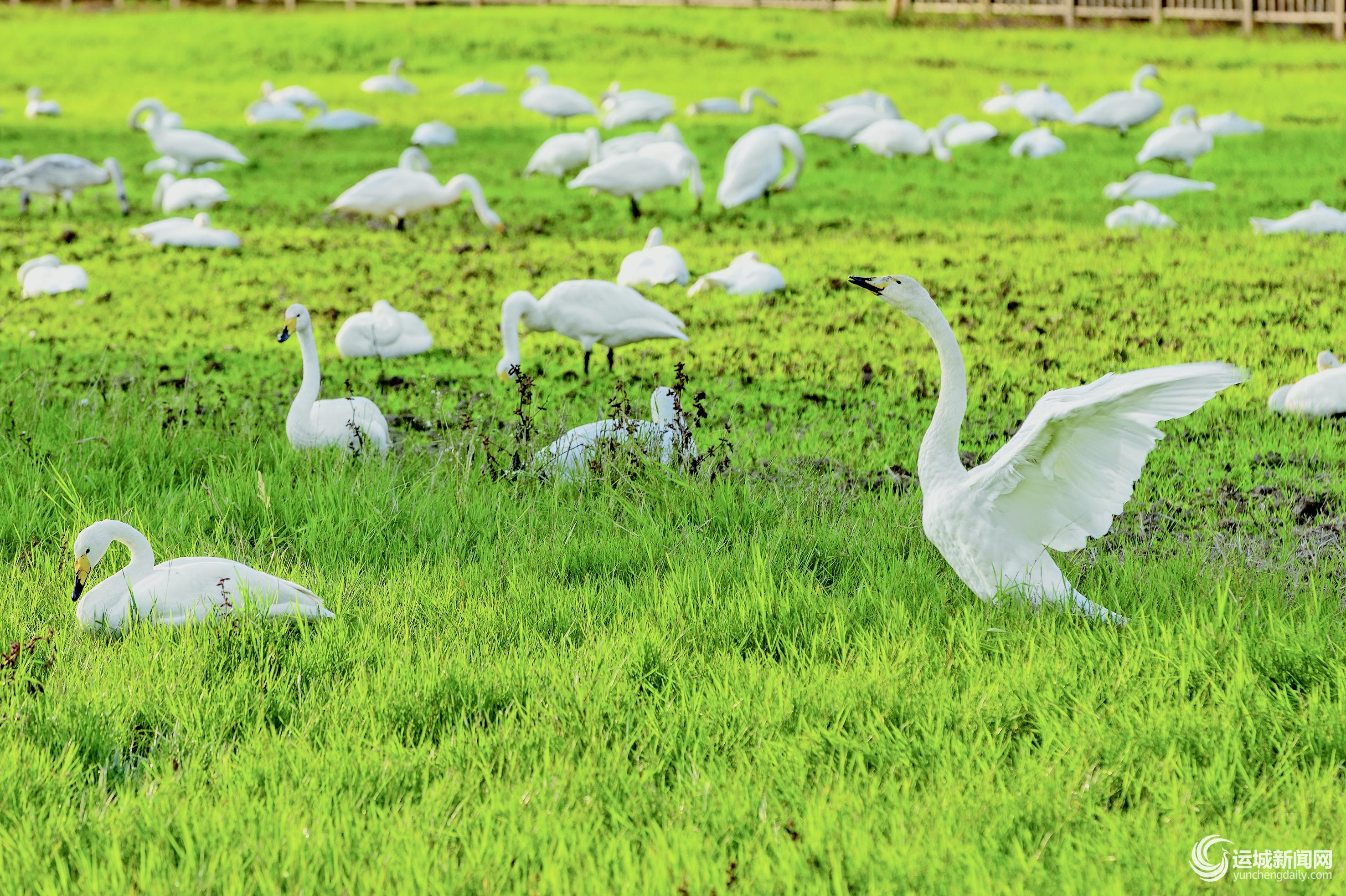 10月28日,平陆县黄河湿地三湾段迎来了700多只野生大天鹅,它们或在麦田里舒展白羽、亲昵互动,或于湿地水域悠然游弋,与岸边垂柳共同勾勒出人与自然和谐共生的生态画卷。 特约摄影 权永军