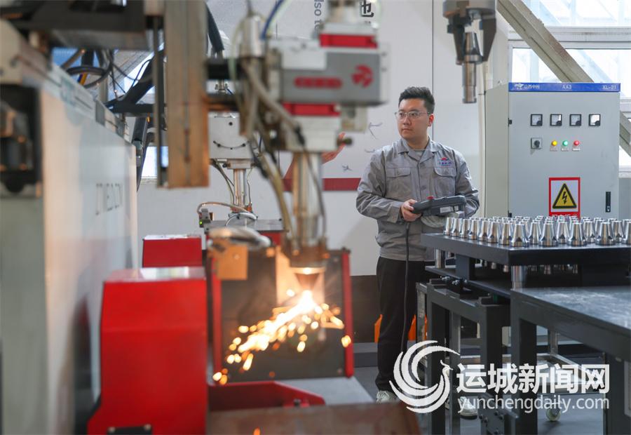11月5日,山西东来机械科技有限公司生产车间内,工人在操控智能设备生产截齿产品。