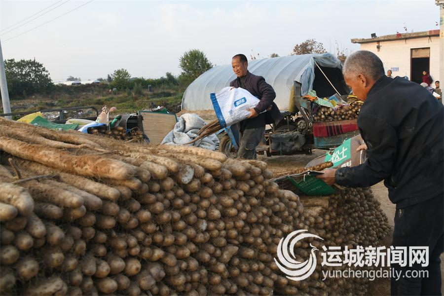 近日,闻喜县郭家庄镇郭家庄村山药种植基地里,村民在采收、打捆山药,准备销售。