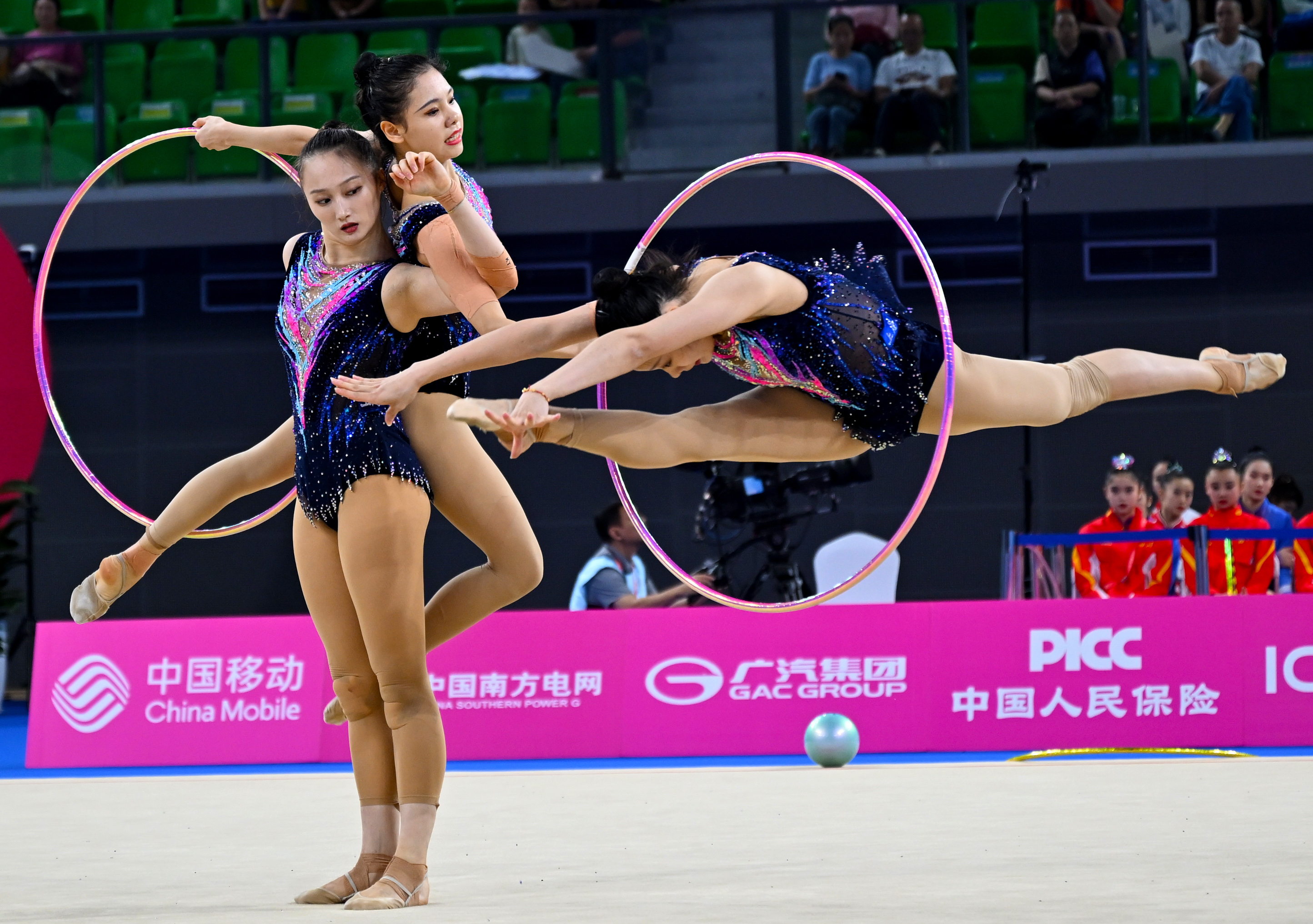 当日,第十五届全国运动会艺术体操集体全能预赛在深圳举行。