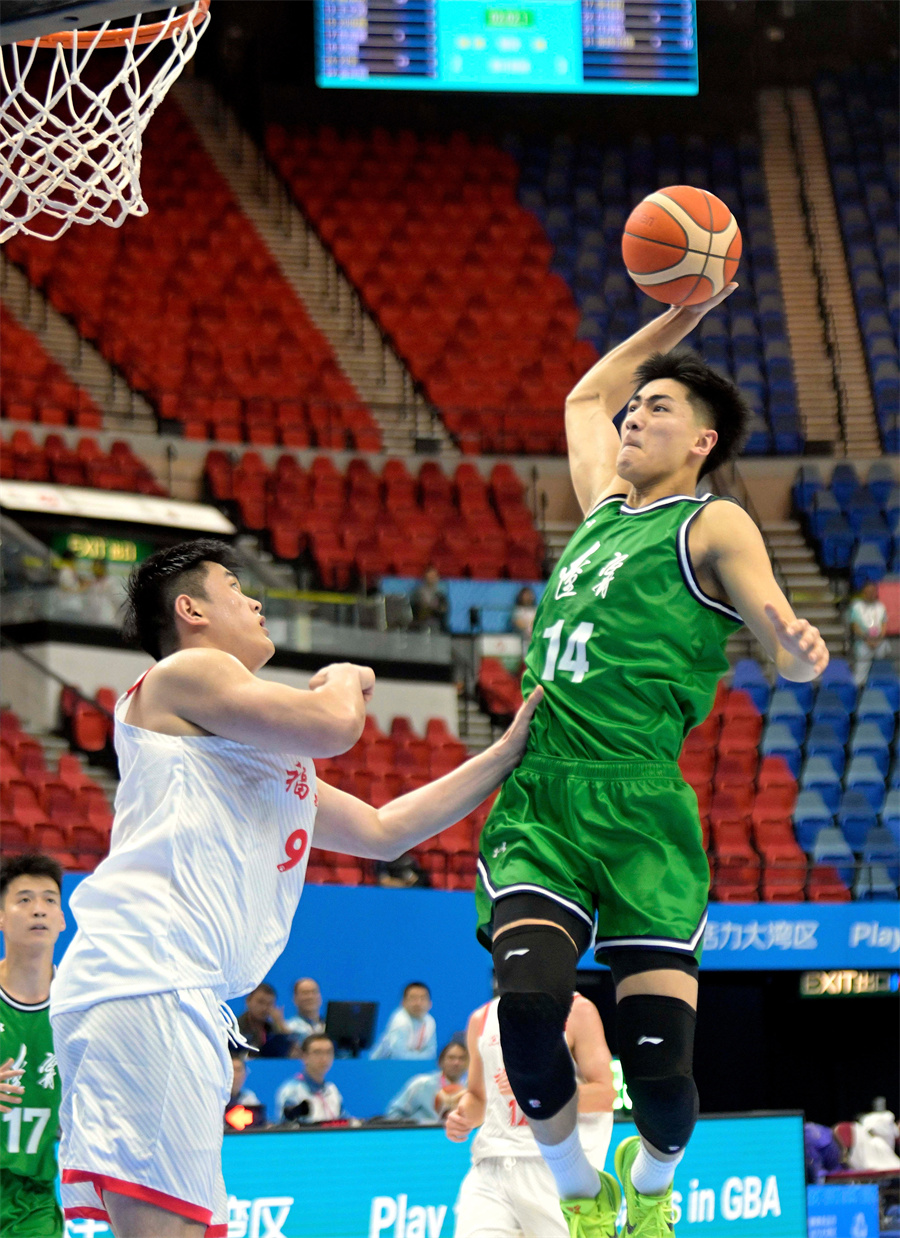 当日,在香港进行的第十五届全国运动会篮球男子22岁以下组小组赛中,辽宁队120比62战胜福建队。 新华社发(卢炳辉 摄)