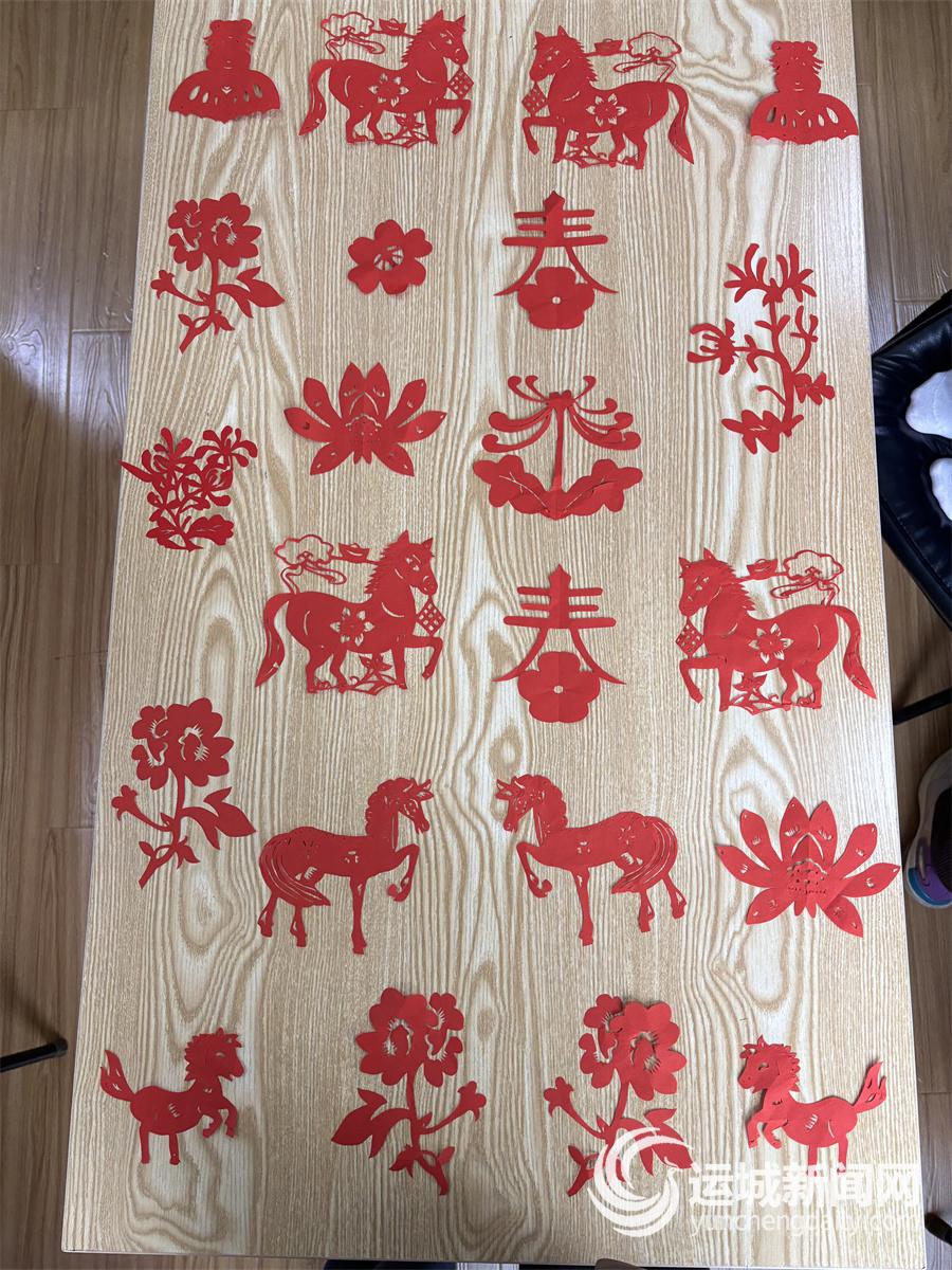 再次拿起剪刀,是在街头偶遇的惊喜。2008年的一天,李惠芳看见路边摊上卖的窗花,小时候贴窗花的记忆突然翻涌上来。她立马买下窗花,回到家便找出剪刀试着模仿。“一开始剪的时候,什么都想剪,可惜不太会剪,因此剪坏了好多张红纸。但听着剪刀裁过纸张的脆响,心里反而越发宁静了。”那时的她是盐湖区北城中学的一名物理老师,日常是教室里此起彼伏的读书声,而剪纸,成了她下班后独有的“宁静角落”。