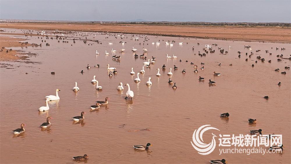 11月17日,永济黄河湿地迎来一年一度的候鸟越冬高峰。大雁、白天鹅、灰鹤、绿头鸭等多种珍稀候鸟陆续飞抵,它们或在水面嬉戏、或在滩涂觅食、或在空中翱翔,为冬日的黄河湿地带来了活力。 特约摄影 陈春明