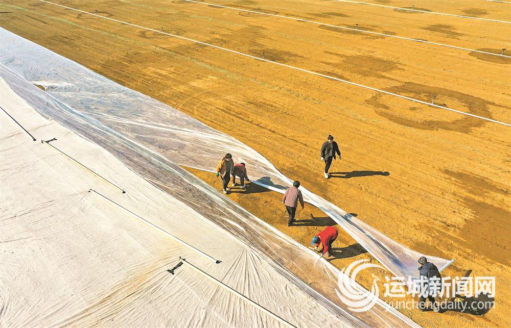 11月19日,夏县裴介镇石桥庄村的一处农业种植专业合作社田间,村民正给秋冬种作物进行覆盖作业,起到防寒、防冻、保墒的作用。