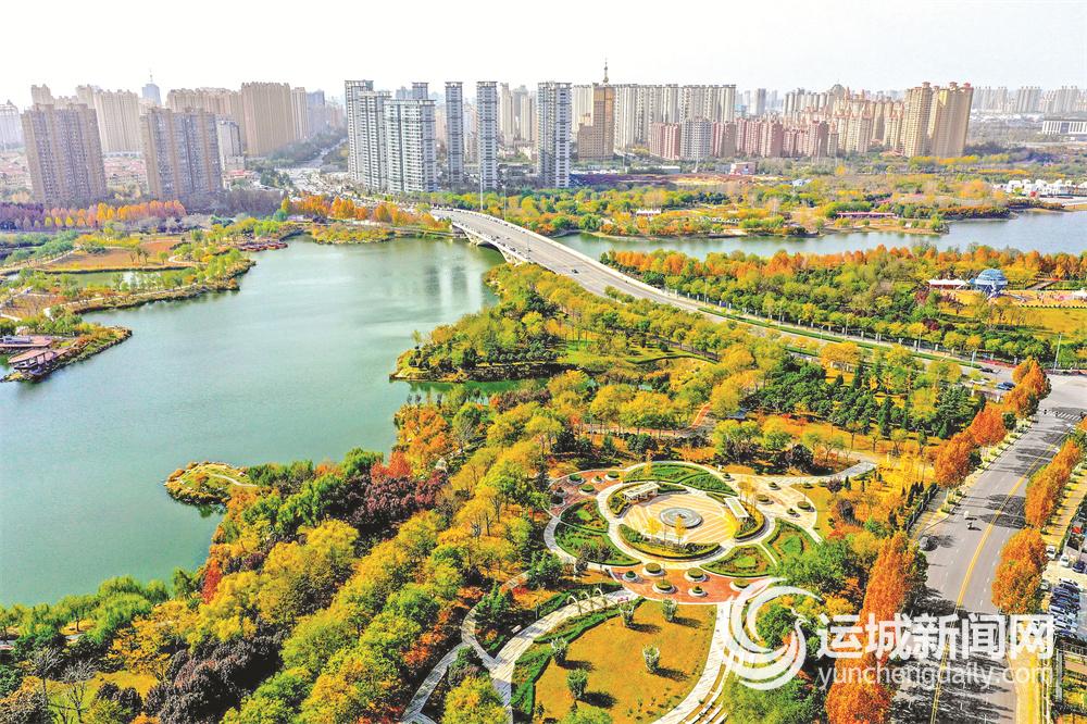 11月16日,中心城区禹都公园园内景致与周边建筑、道路等交织,勾勒出城市与生态共生共融的新图景。