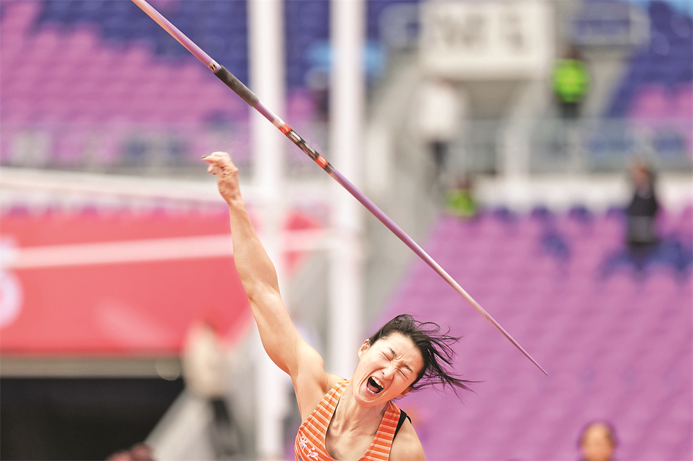 11月19日,浙江队选手刘静逸在比赛中。当日,第十五届全国运动会田径项目女子七项全能标枪比赛在广州举行。