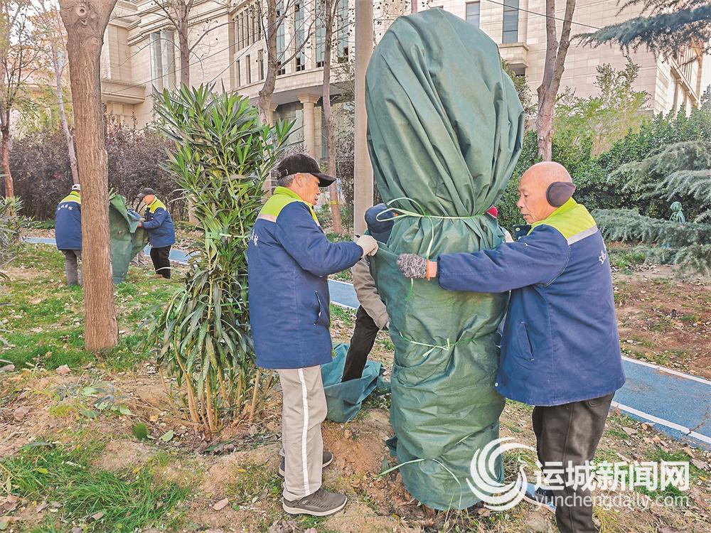 为保障苗木安全越冬,近期,市园林绿化服务中心迅速行动,组织工作人员在中心城区各路段开展苗木防寒棉包裹与冬季修剪作业,为绿化苗木披上“保暖衣”、修整“好身形”,帮助苗木顺利进入“越冬模式”。