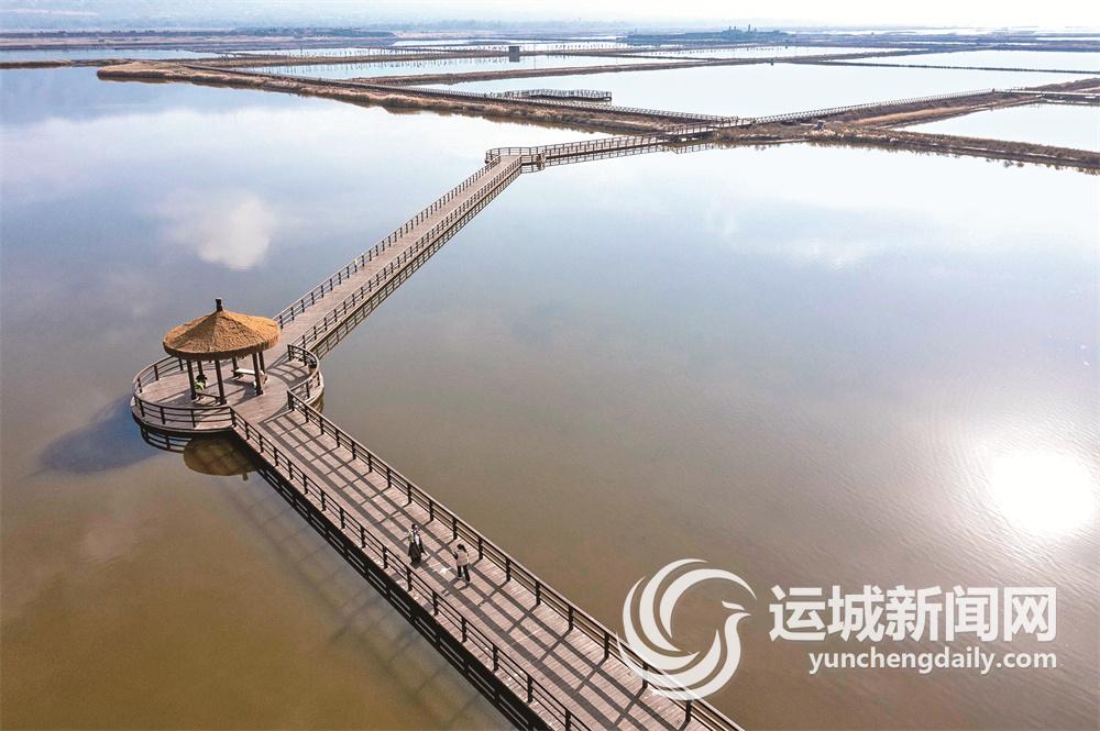 近期天气晴好,不少市民来到木栈道,近距离感受盐湖美景。