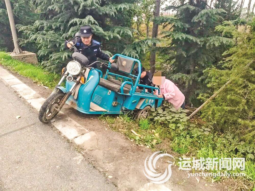 当日8时许,翟店派出所接到110指令称,运稷线某村门楼附近,一名老人驾驶电动三轮车不慎坠入路边沟渠。警情就是命令,时间就是生命。指令到达的瞬间,民辅警便拎起应急救援装备飞速奔向警车,发动、掉头、鸣笛,一气呵成。仅用短短几分钟,民辅警便到达了现场。