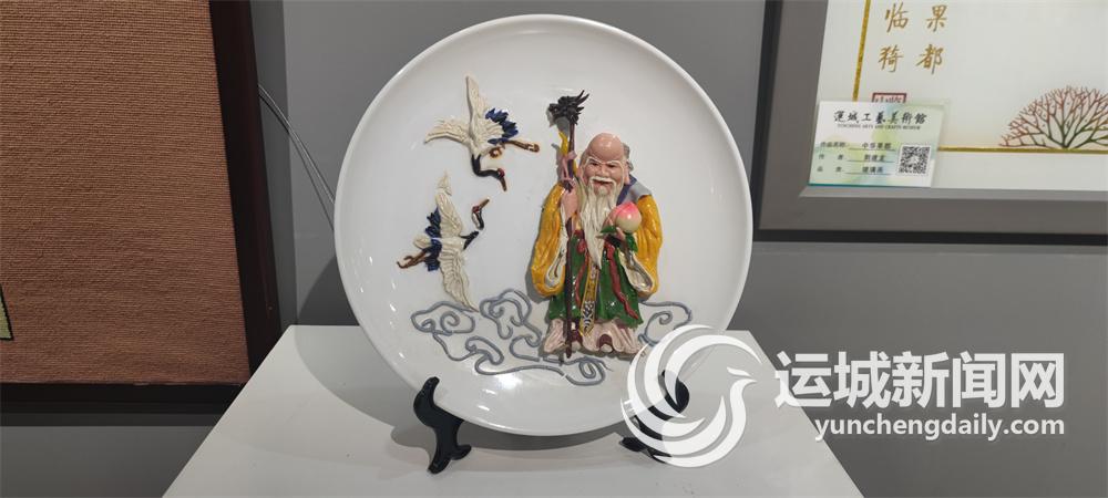 运城工艺美术馆展出的“寿星”题材工艺品 记者 刘亚 摄