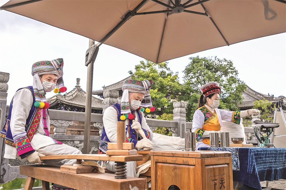 11月23日,下关沱茶制作技艺展台的工作人员在2025非遗品牌推广周上制作沱茶。当日,2025非遗品牌推广周启动仪式在云南省大理市举行。