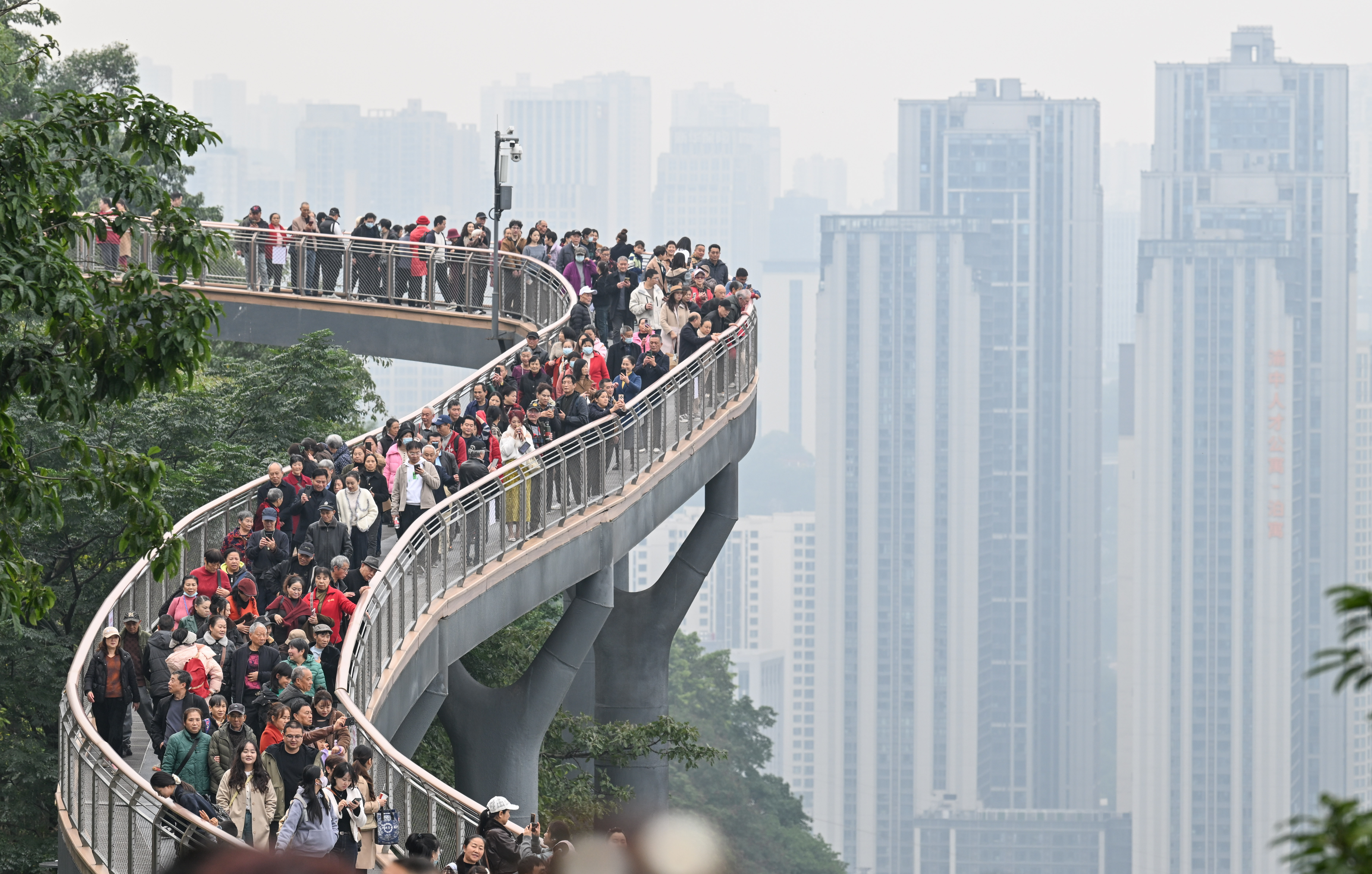 11月24日,人们在重庆半山崖线鹅岭栈桥观光。
