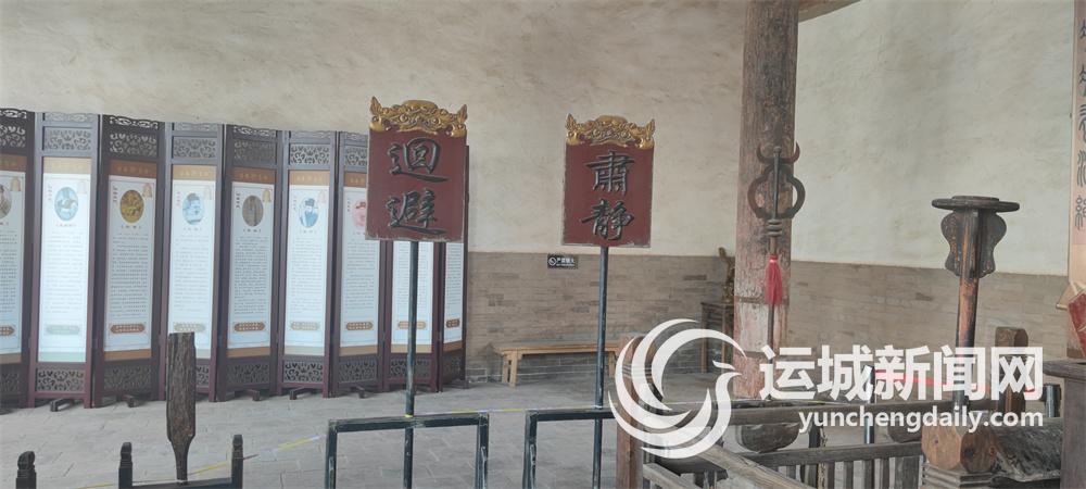 临猗县临晋县衙景区写有“回避”“肃静”字样的对牌 记者 刘亚 摄