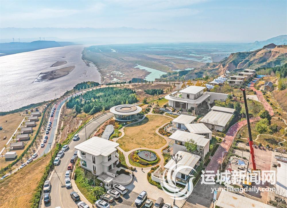 初冬时节,芮城境内黄河岸畔,蜿蜒的河道与黄河一号旅游公路、民宿建筑等相映成辉,美不胜收。