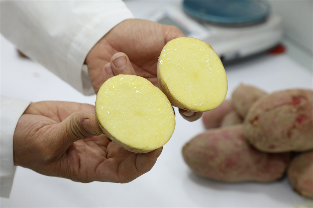 11月25日在位于乌兹别克斯坦首都塔什干的乌兹别克斯坦科学院遗传学与植物实验生物学研究所拍摄的马铃薯。当天,在该研究所的试验田里,“中乌马铃薯高产技术联合研发基地”进行项目验收,由青岛农业大学专业团队开展的秋作马铃薯栽培田间试验迎来丰收。