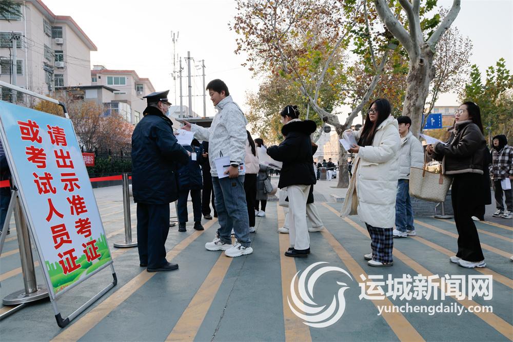 图为当日运城考区运城市实验中学考点,考生有序进入考场。