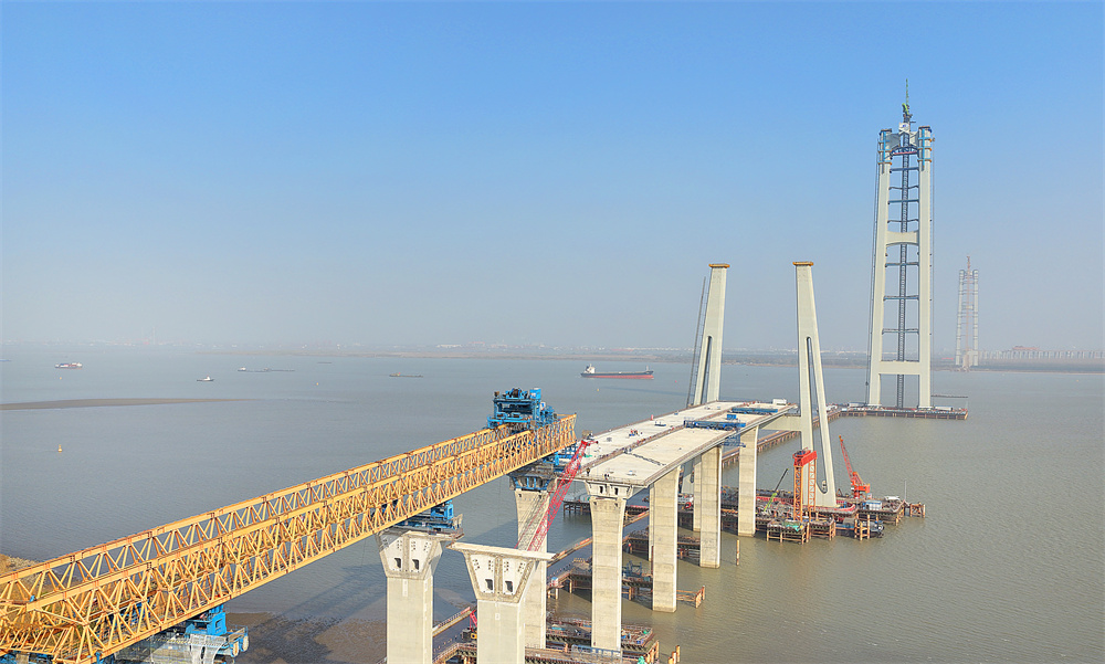 12月1日,由江苏省交通工程建设局建设、中交二航局承建的张靖皋长江大桥南航道桥南主塔上横梁精准合龙,成功实现封顶,标志着大桥南航道桥南北主塔主体工程施工全部完成。张靖皋长江大桥连接江苏苏州、泰州和南通,跨江段全长7859米,设置南、北两座航道桥及南中北三段引桥。