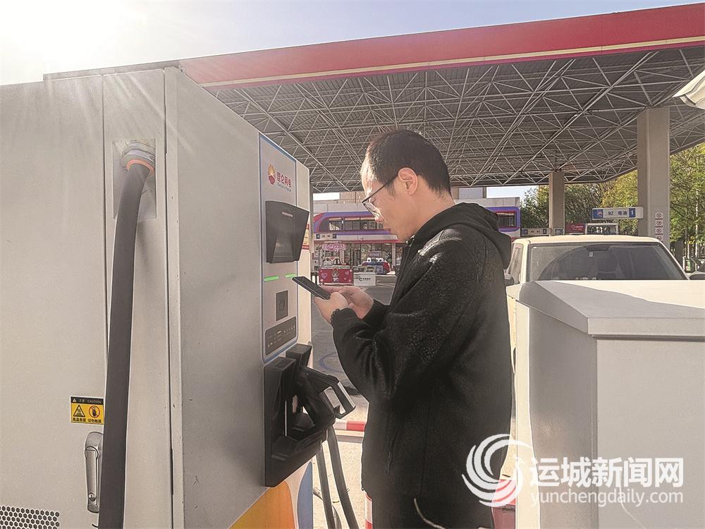 11月29日下午,市民王磊来到我市中心城区中国石油运城吾悦广场充电站,为他的新能源汽车充电。插上充电枪、扫码启动后,车辆进入充电状态,王磊便和家人走进商场用餐、购物。