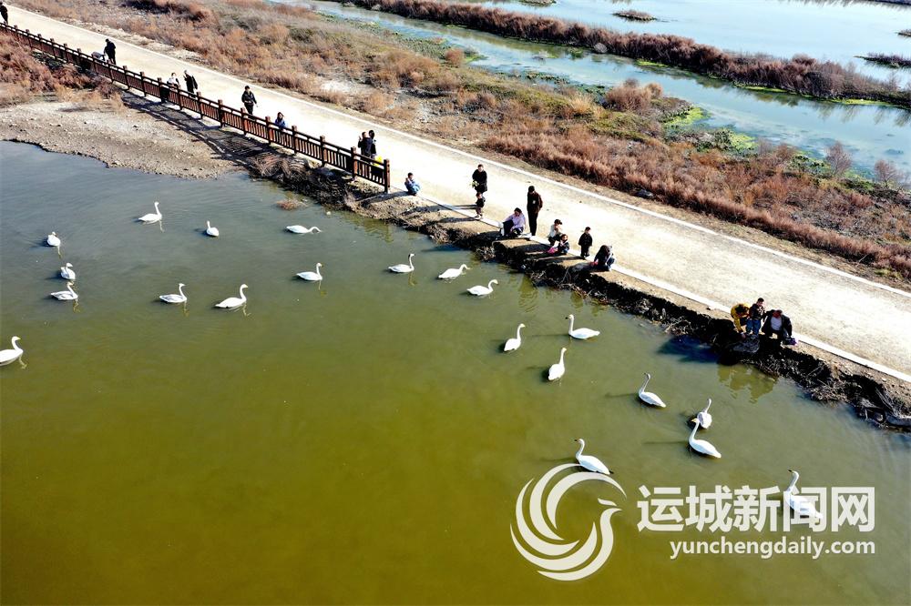 近年来,运城盐湖实施生态保护与修复,生态环境改善,吸引大天鹅、白鹭等珍稀鸟类前来栖息“安家”,给古老的盐湖注入生机与活力。