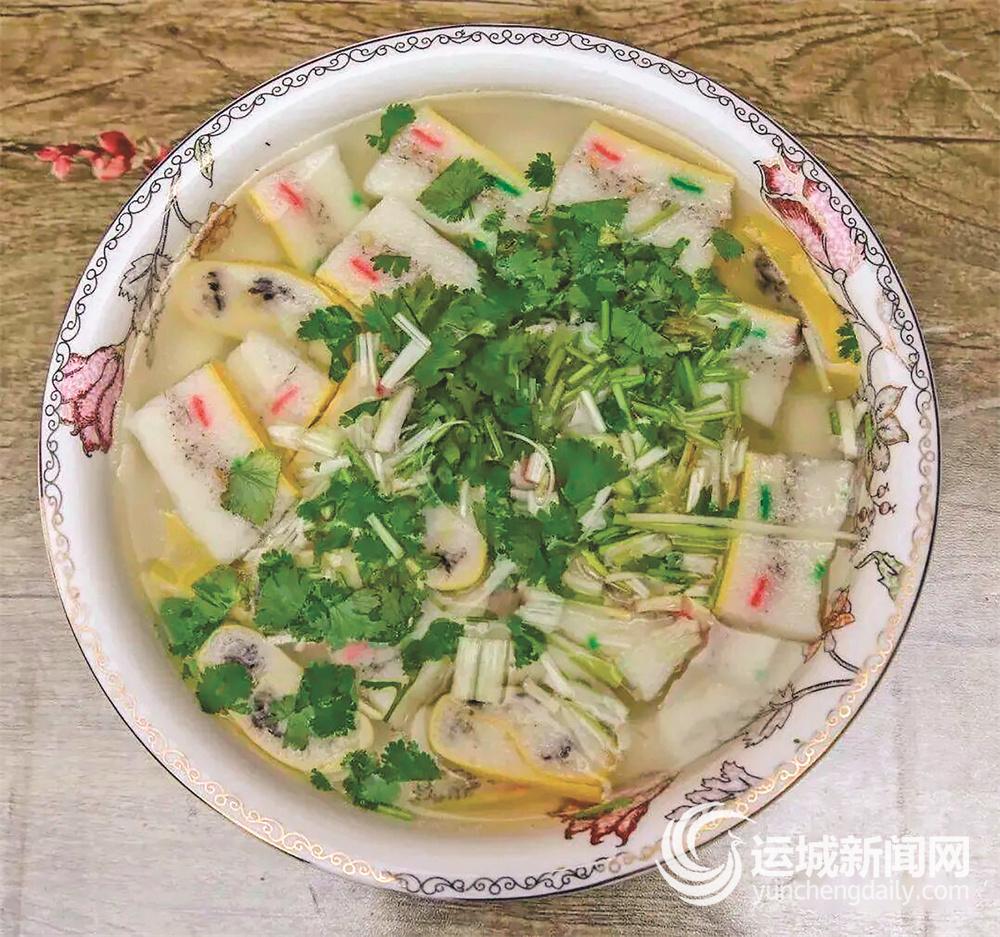 烩好的瓤菜片都是漂浮在汤上面的,如果少用了鸡蛋或掺了假,瓤菜就会沉到碗底。