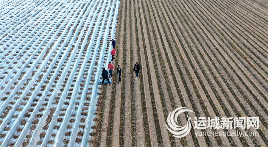 近日,夏县尉郭乡一处家庭农场,村民在搭建越冬葱小弓棚。