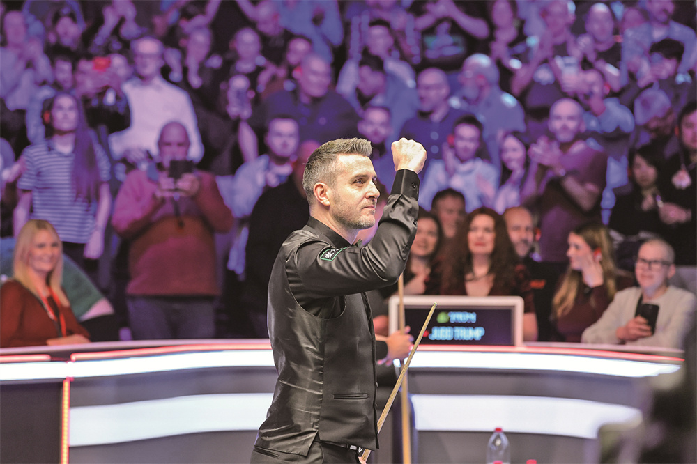 当日,在英国约克举行的2025年斯诺克英国锦标赛决赛中,英格兰选手塞尔比10比8战胜另一名英格兰选手特鲁姆普,夺得冠军。 新华社发(翟政 摄)