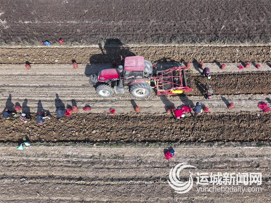 12月4日,稷山县清河镇一中药材种植基地,百余名工人在采收地黄。