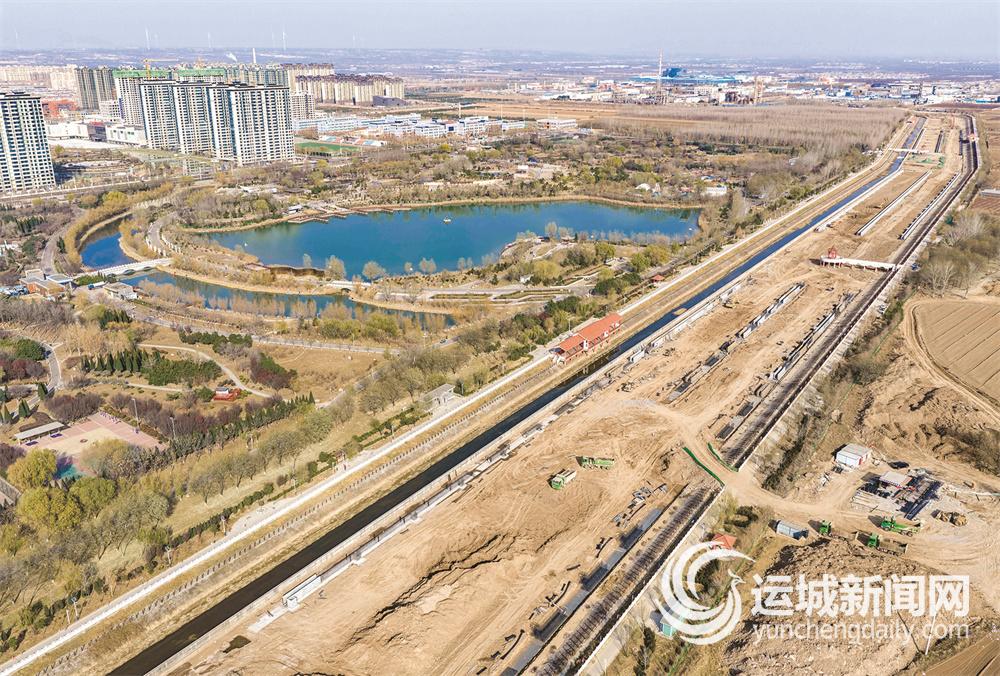 12月8日,临猗县涑水河城区段水生态保护修复项目正在有序推进。