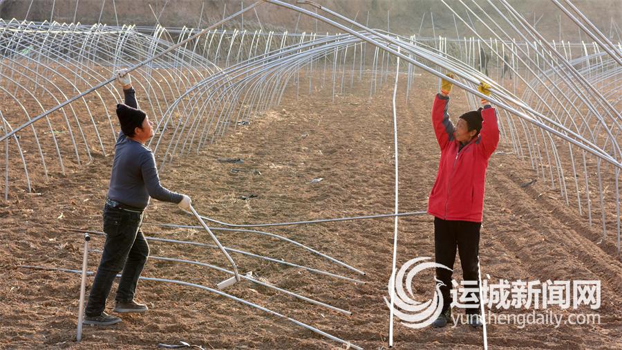 12月10日,垣曲县王茅镇柳庄村农田里,村民忙于搭建弓棚,准备种植大棚西瓜。 特约摄影 崔松良 摄