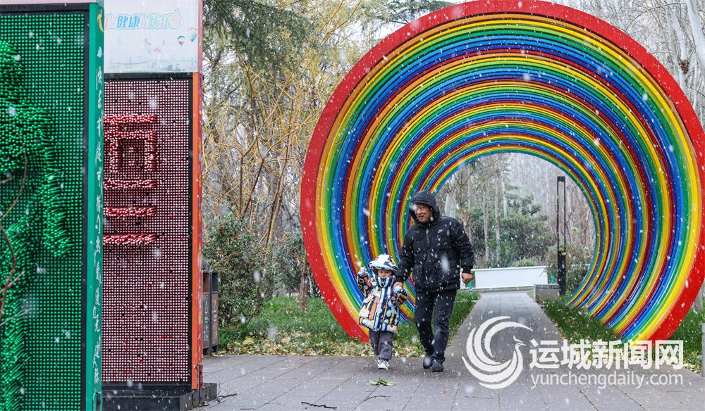 12月12日,运城市中心城区河东东街,市民冒雪出行。