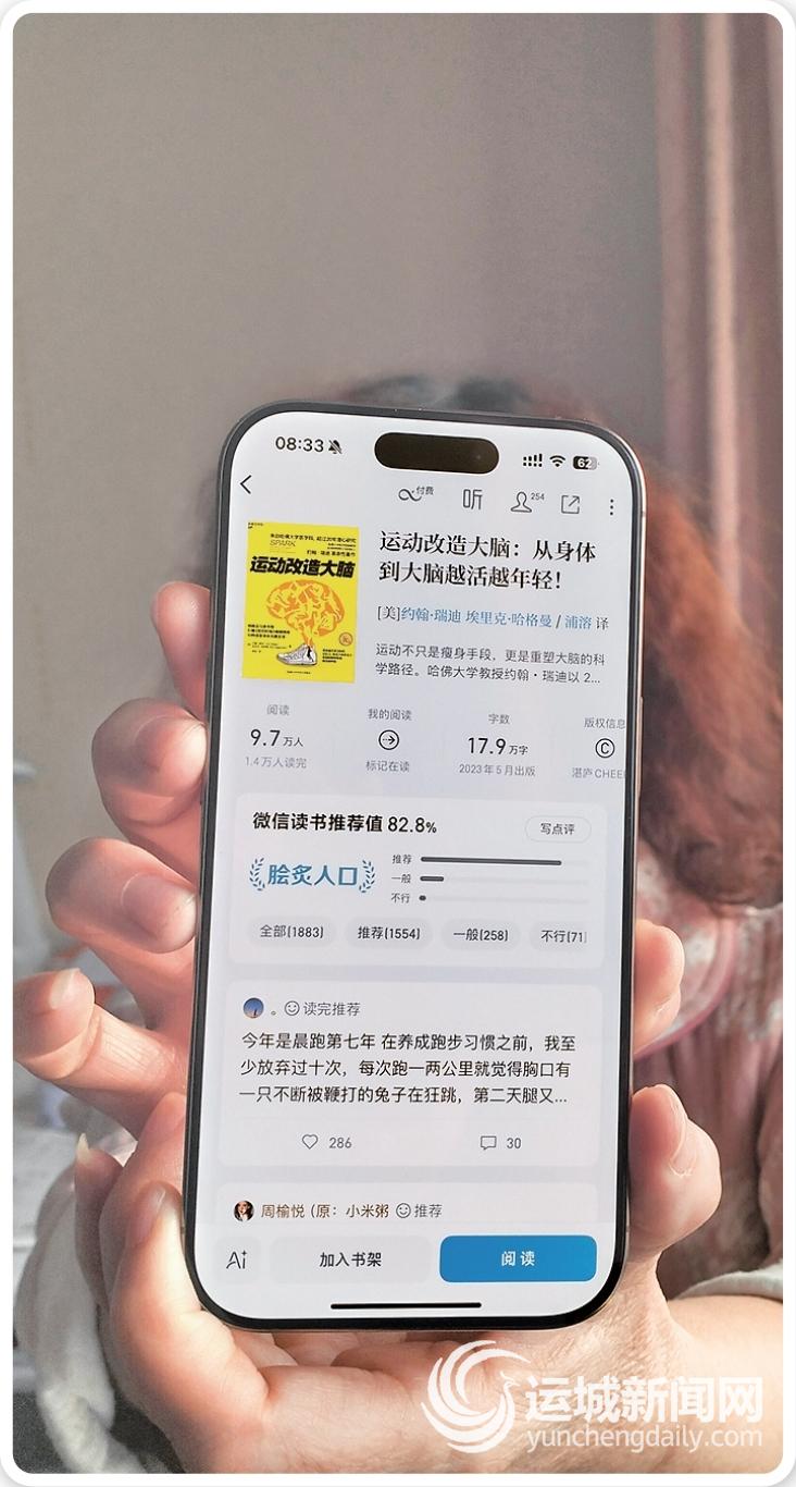谈及使用心得,刘先生分享了自己的高效阅读技巧。以《运动改造大脑》为例,这本书里满是专业术语和神经科学概念,让他一度望而却步。抱着试试看的心态,他点开“AI问书”,输入第一个问题:“这本书有哪些核心亮点?值得读吗?”令他惊喜的是,“AI问书”依托DeepSeek-R1和混元-T1两大顶级模型,从“科学突破”“实践应用”“社会影响”3个维度,梳理出全书精华,帮他快速抓住书籍框架,明确阅读方向。