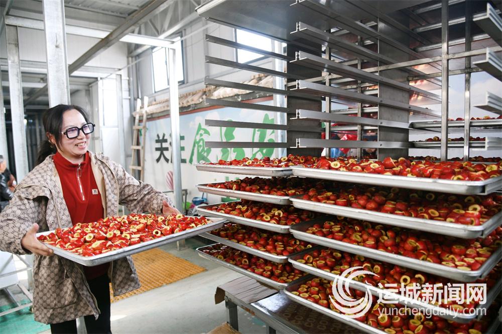 12月21日,闻喜县阳隅镇瓮村鲜果冻干加工车间,工人在鲜果冻干生产线上作业。