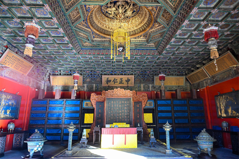 经过近10年的研究性保护和系统性修缮,故宫养心殿于12月26日对观众重新开放。养心殿位于乾清宫西侧,西六宫迤南,始建于明代嘉靖十六年(1537年)。2015年,养心殿研究性保护项目启动。经过系统性修缮保护,有效解决了建筑本体存在的问题,恢复并延续了养心殿区域的健康状态,改善了室内文物的保存环境。新华社记者 金良快 摄