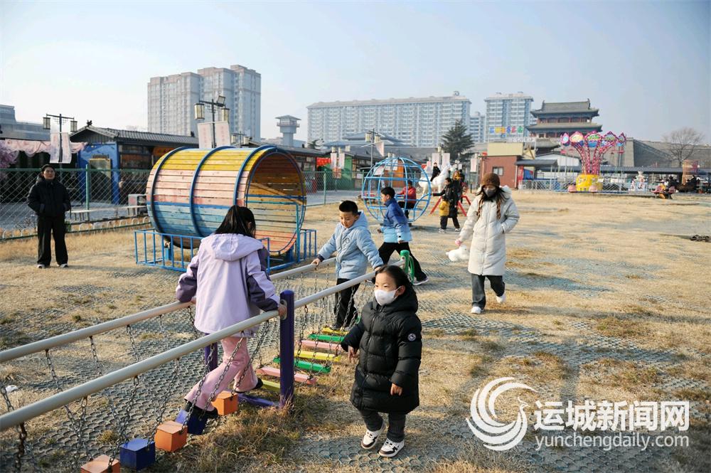 12月28日,小朋友在盐博湖镜亲子乐园游玩。